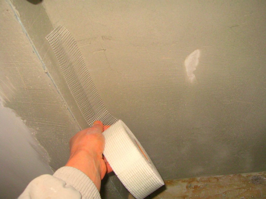 2. На все стыки, в том числе и в углах, нанесите серпянку. Это такой сетчатый материал в рулончиках, похожих на бинт. Материал самоклеящийся, но лучше его дополнительно посадить на ПВА.