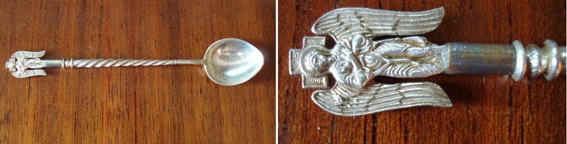 И наконец, была отремонтирована миниатюрная ложечка. Материал серебро 925 пробы. Надо было бы отнести к ювелиру, цена вопроса то всего 500 рублей, да владелица — молодая, немножко сентиментальная дама не захотела отдавать очень личную вещь в чужие руки. Подобрал в качестве соединительного элемента трубочку под золото, местами чуть залудил (теперь она в общей палитре позолоченного когда-то серебра «колею не портит») и залил клеем.