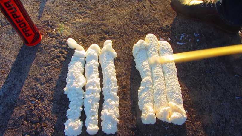На баллончике обычно указывается, сколько времени требуется для затвердевания состава. Несмотря на указания, подождать рекомендуется 10-12 часов. Как только герметик полностью затвердеет, можно убрать излишки с помощью ножика или пилы.
