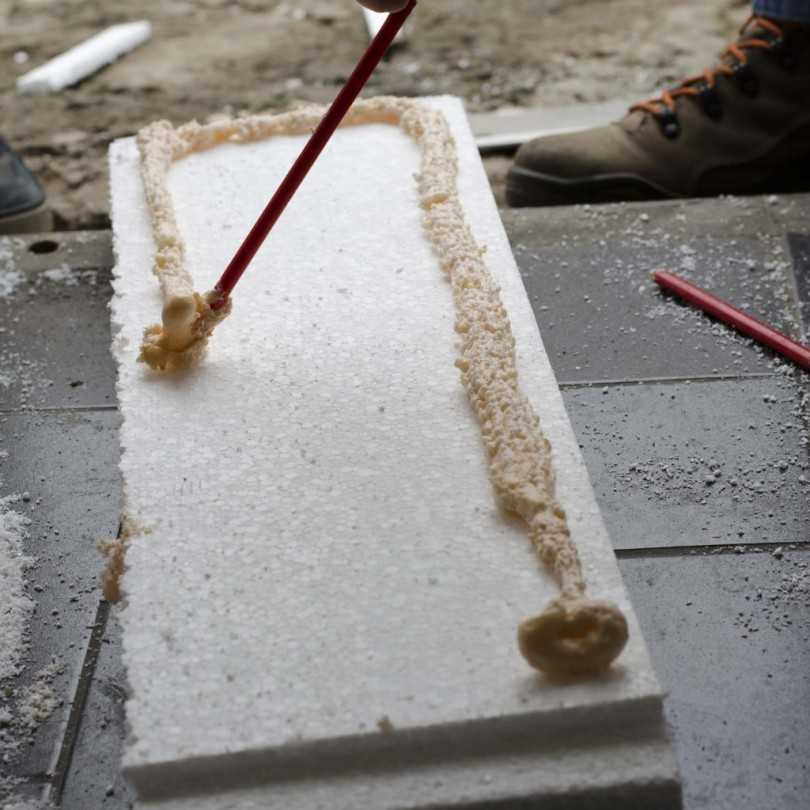 - Зазоры между элементами тщательно заполните пеной, после чего максимально ровным слоем покройте всю заготовку;