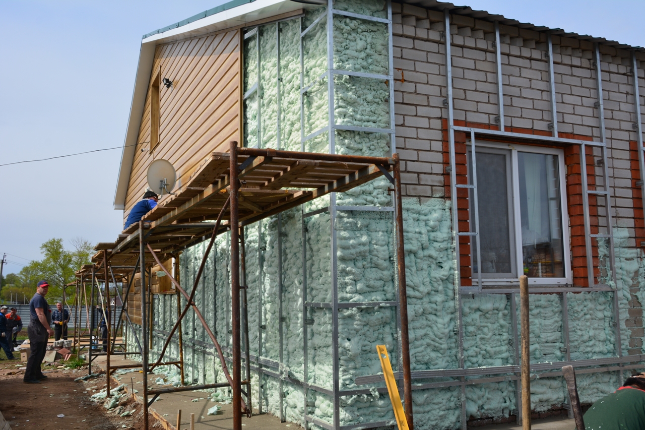 Швы между панелями следует утеплить. Для этого применяют монтажную пену. Работу необходимо выполнять при помощи пистолета или шпателя. После нанесения материала, нужно выждать три часа, до этого нежелательны какие-либо воздействия на герметик, так как он должен застыть и высохнуть.