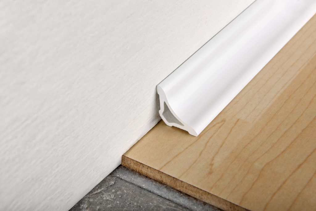 - Нивелирующую. Позволяет скрыть мелкие огрехи на стыке плоскости пола и стены, закрыть возможные щели или не ровный край напольного покрытия.