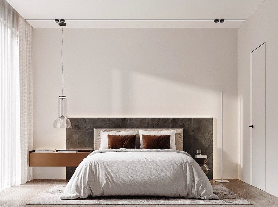Скрытый плинтус подходит для самых разных стилей интерьера, особенно для минималистического. Он идеально вписывается в его лаконичную простоту. Такой вариант плинтуса незаменим при установке дверей со скрытым монтажом, поскольку наличники в таком варианте не используются