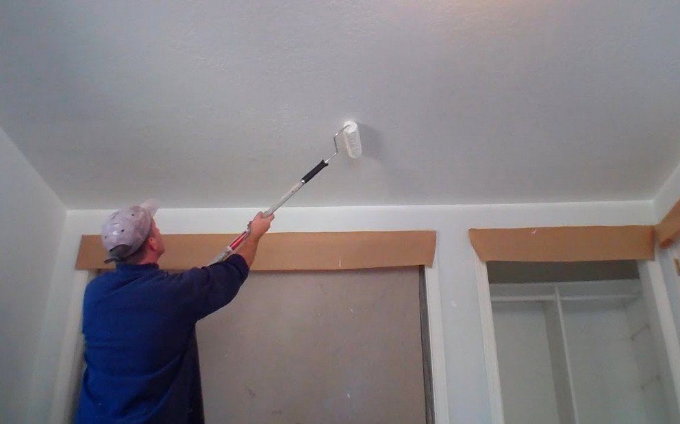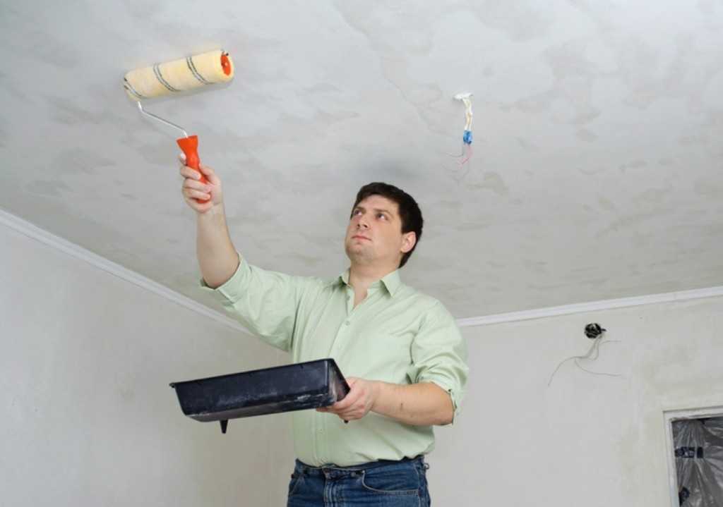 Если потолок покрашен масляной или водоэмульсионной краской, то ввиду невозможности полностью снять такое покрытие, этот процесс просто пропускают.