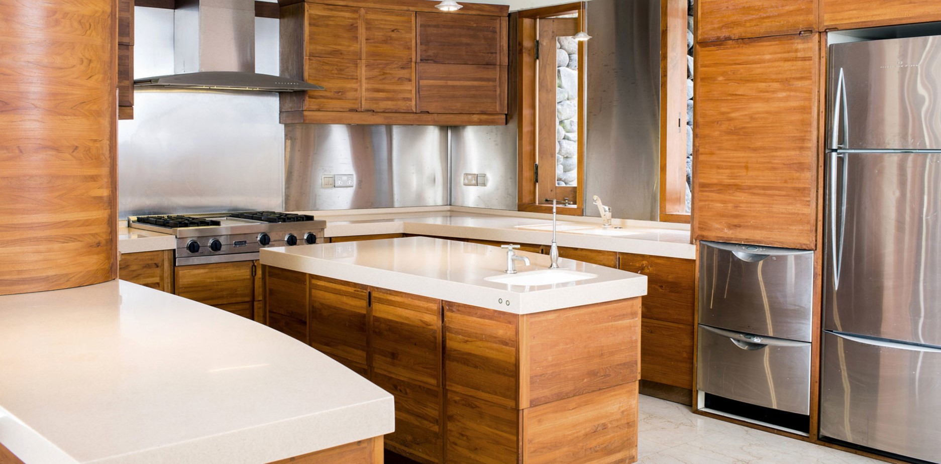 Известняки — это мягкие камни с высокой пористостью. Они легко впитывают жир и воду. Поэтому изготовленные из них поверхности должны быть обязательно пропитаны смолой, силиконом и отполированы. Благодаря этому их будет легче содержать в чистоте.