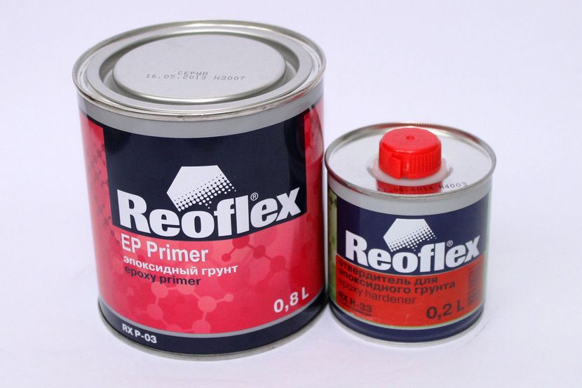 - Reoflex 2K 1+1. Двухкомпонентный праймер жёлтого цвета. В составе фосфаритирующий ингредиент и отвердитель. Отлично подходит для реставрации повреждённых покрытий.