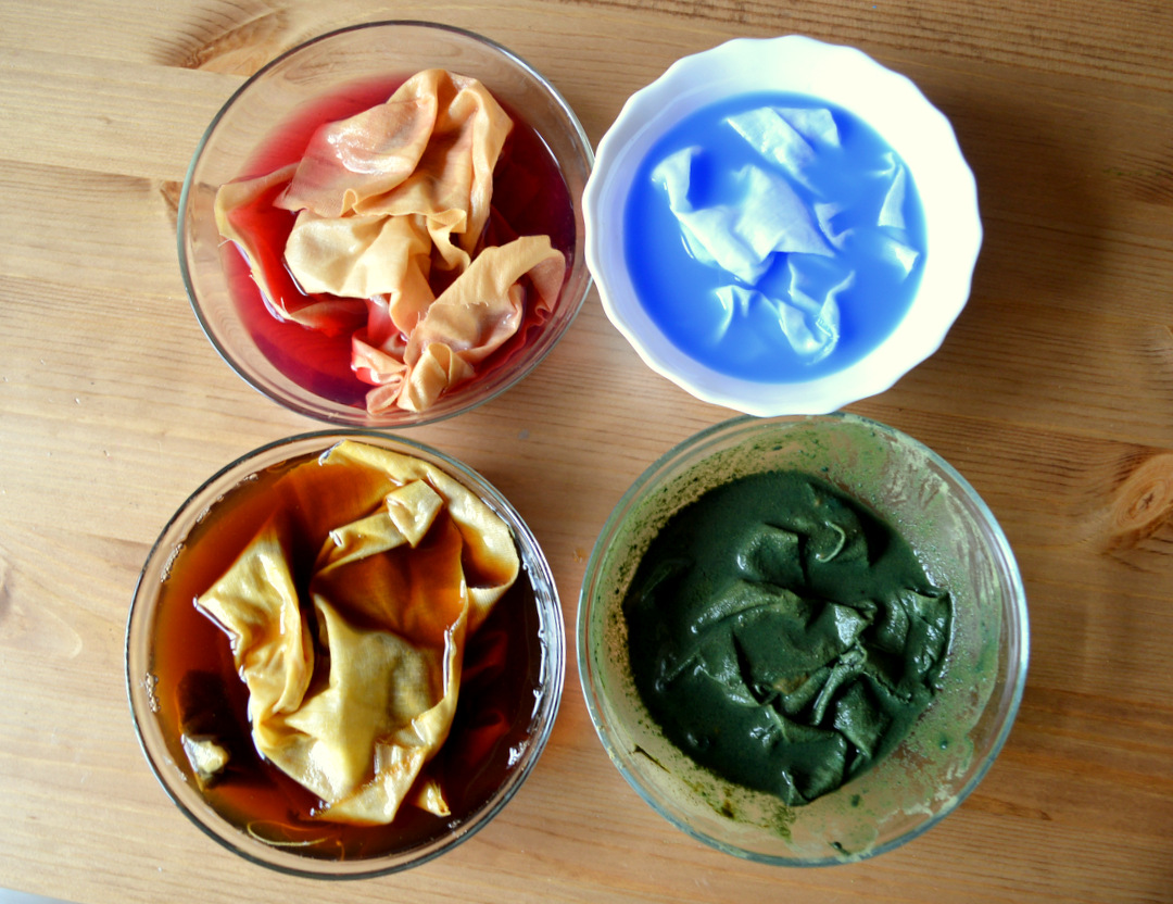 - Хлопок, муслин, шёлк или шерсть лучше поддаются окраске натуральными красками.
