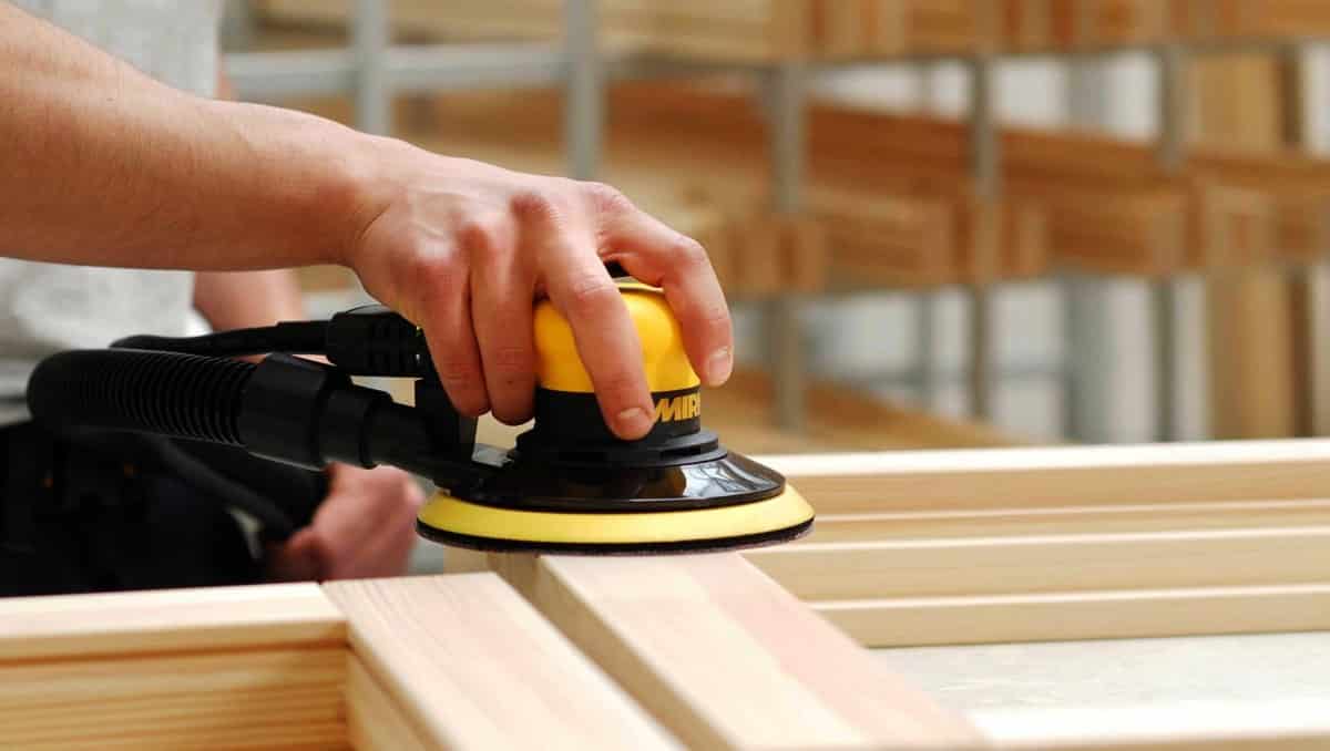 После полной просушки изделие тщательно обрабатывается наждачкой или шлифовальной машиной. Во избежание появления дефектов движения рук необходимо направлять вдоль волокон. Незамеченные вовремя царапины, сколы, впадины на поверхности могут быть хорошо видны после вскрытия морилкой. При помощи шлифовальной машины поверхность делается совершенно гладкой.