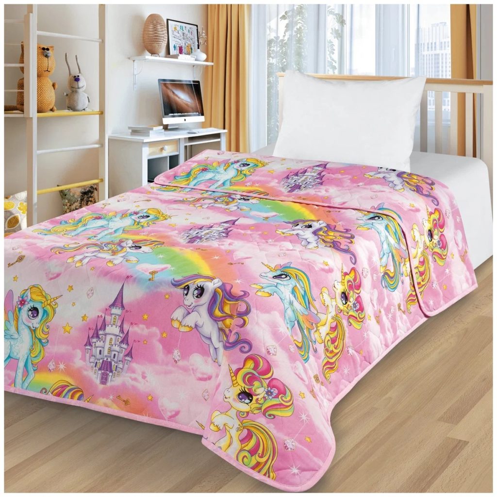 Стеганое покрывало для кровати MILANIKA классик с милыми радужными пони, непременно покорит сердце юной принцессы. Это детское покрывало создано из натуральных дышащих материалов, которые смогут обеспечить малышу много хороших эмоций.