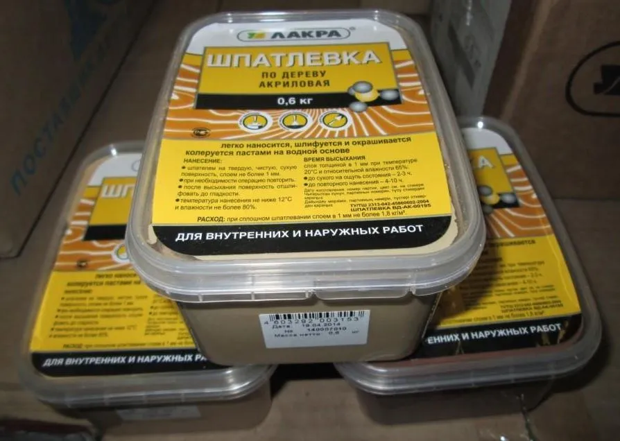 Группа компаний «Лакра» — один из ведущих отечественных производителей, специализирующийся на изготовлении материалов, предназначенных для декоративной отделки. В её каталоге присутствует акриловая смесь, представленная в разных, наиболее популярных древесных тонах. Шпаклёвка мелкозернистая, хорошо поддаётся обработке после затвердевания, тем не менее прочна и способна выдерживать значительные механические нагрузки.