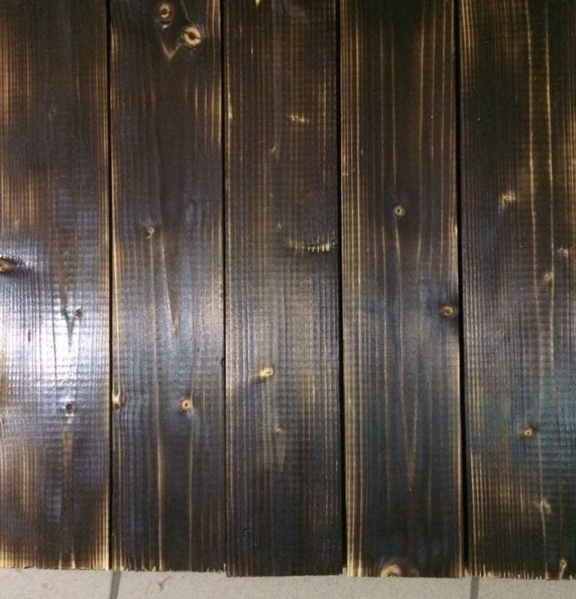 Предварительное опаливание позволяет прижечь наружный мягкий слой и одновременно тонировать древесину.