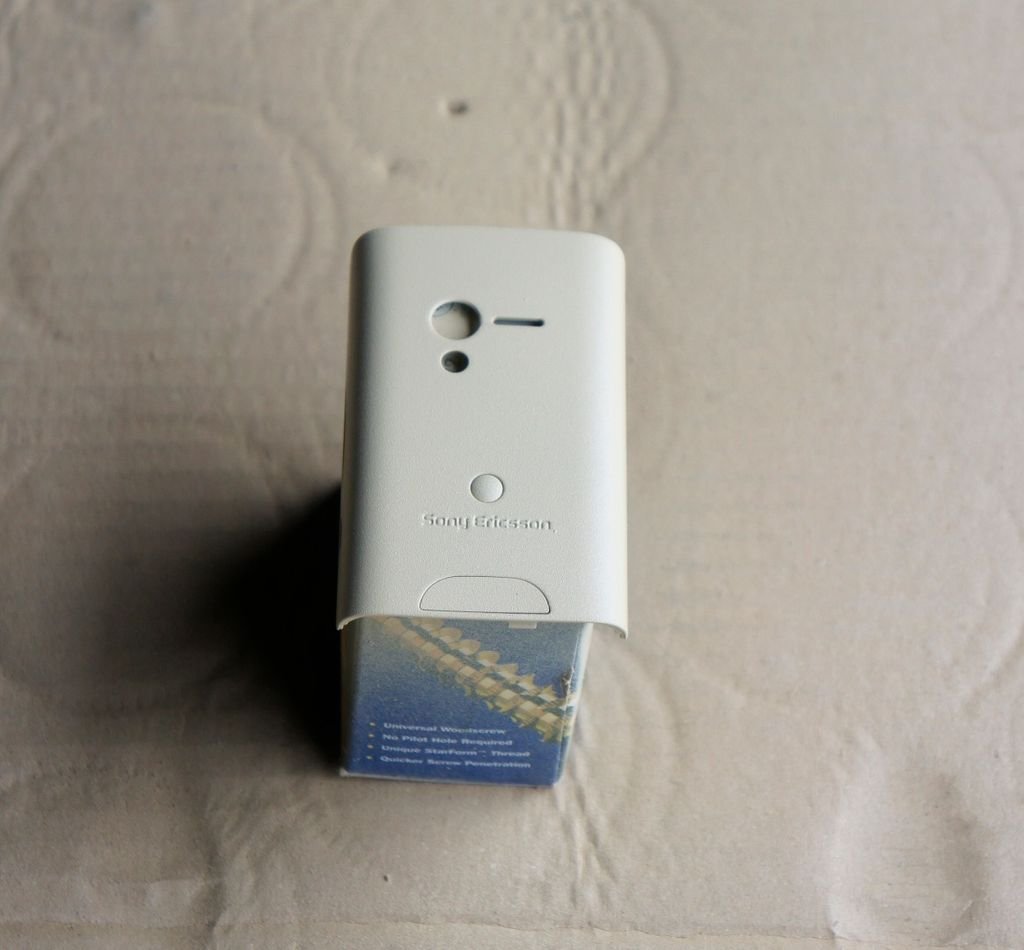 Шаг 3. Застелите рабочую поверхность бумагами или тряпками, чтобы защитить ее от краски. Заднюю крышку телефона положите на любой ненужный предмет так, чтобы она зависла в воздухе. Просто на столе работать будет сложнее, так как закрасить нужно будет и боковые стороны.