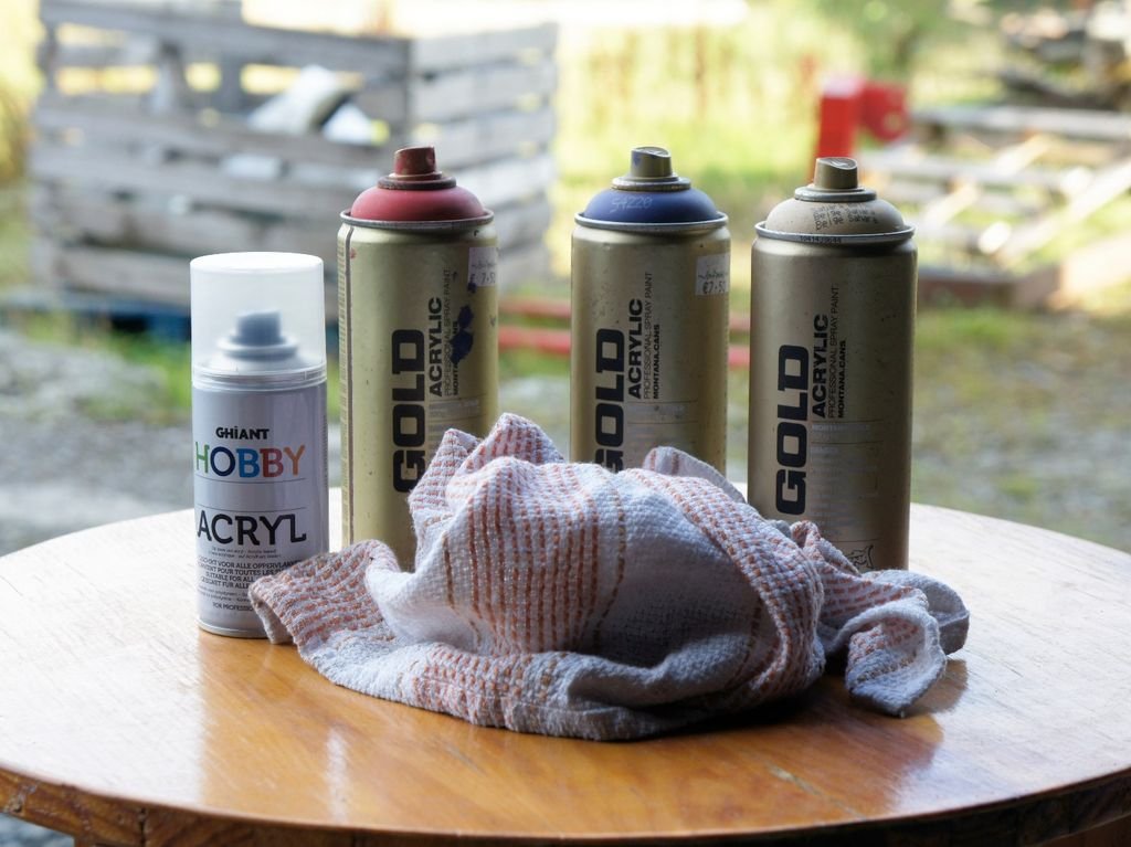 - краски в баллончиках разных цветов (они должны между собой сочетаться);