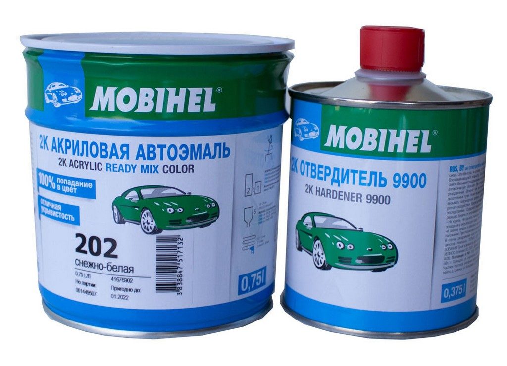 Обычная акриловая эмаль — двухкомпонентная, с отвердителем. «Набор ингредиентов» для таких материалов состоит из трех банок. Например, литр краски, пол-литра отвердителя и 100-150 мл разбавителя. То есть, покупая литр краски, реально вы получаете около 1,6-1,7 литра разбавленной краски.