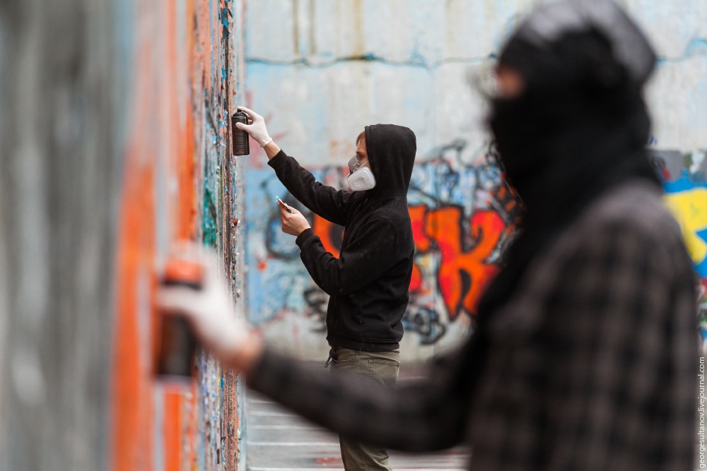 Разрисовано было несколько трансформаторных будок. Райтеры признались, что работать днем над большими картинами намного интереснее. Теперь с помощью баллончиков для краски граффити стали украшать город.