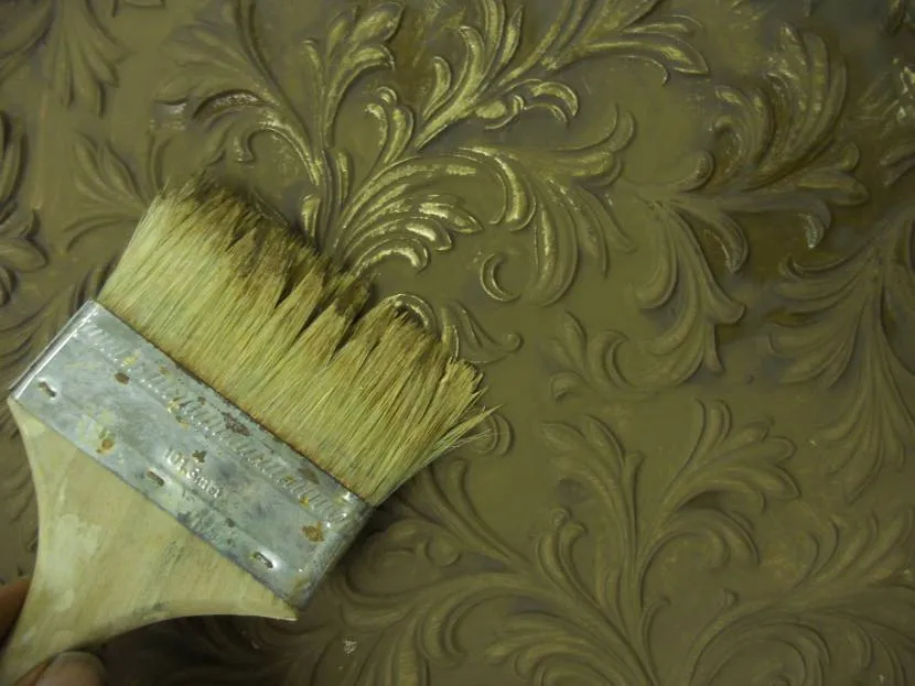 Также можно полностью не закрашивать обои. Интересный вариант – тонирование отдельных выпуклых частей или же распыление краскопультом краски по уже созданному фону. Нужно лишь заранее продумать, какой эффект желаете получить.