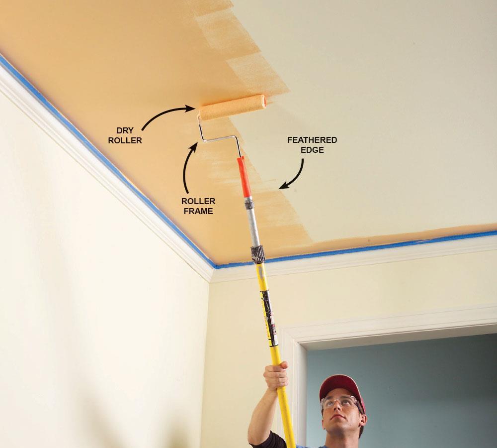Направление слоев при покраске потолка.