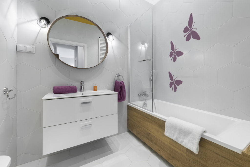 Это специальные водостойкие яркие наклейки, помогающие внести разнообразие на поверхность кафеля. Напоминают большие стикеры и наносятся похожим образом.