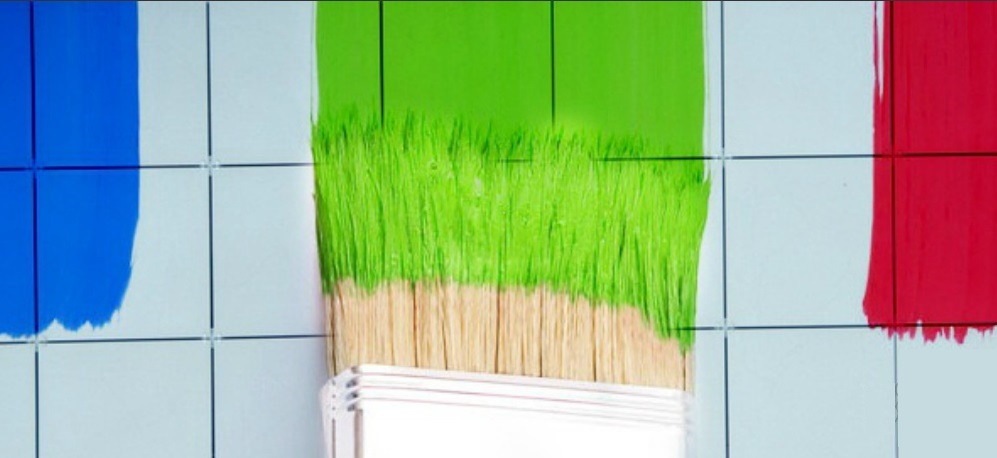- Капитальная покраска. Первый и самый простой вариант, как покрасить плитку. Вся поверхность красится плиткой в один цвет. Можно полностью перекрасить поверхность другим цветом, создав, таким образом, новый стиль интерьера.