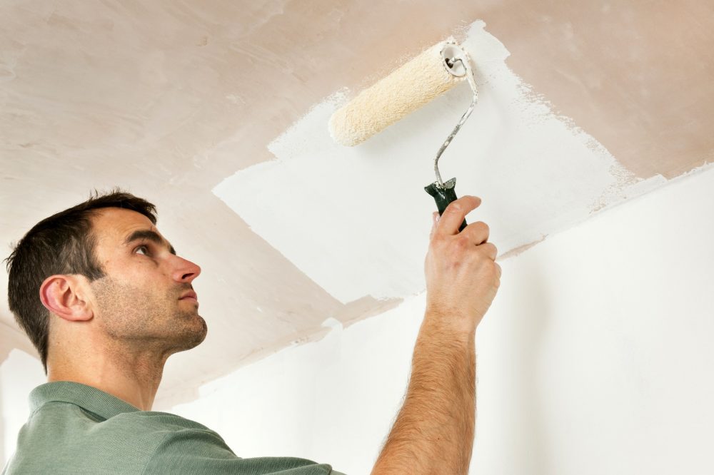 Покраска потолков акриловой краской валиком выполняется в такой последовательности: