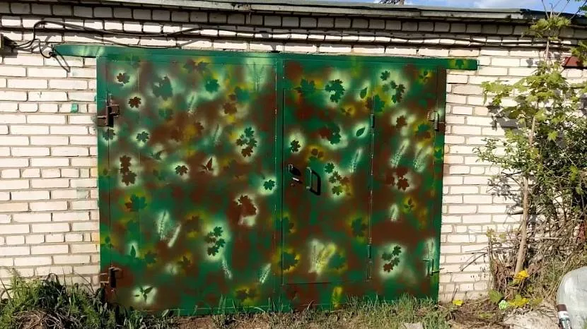 Для нанесения шаблонных рисунков применяются различные трафареты. Нанесение рисунка выполняется после покрытия полотна двери краской. Роспись железных дверей выполняется вручную.