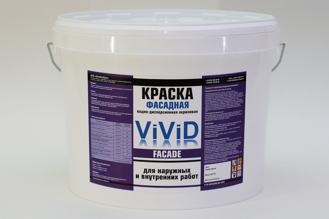 Данный лакокрасочный состав представляет собой водно-дисперсионную смесь, производимую на основе акрила. Окрашенная поверхность имеет матовый оттенок, колеровка производится с помощью особых цветных паст, также созданных на основе данного сырья.