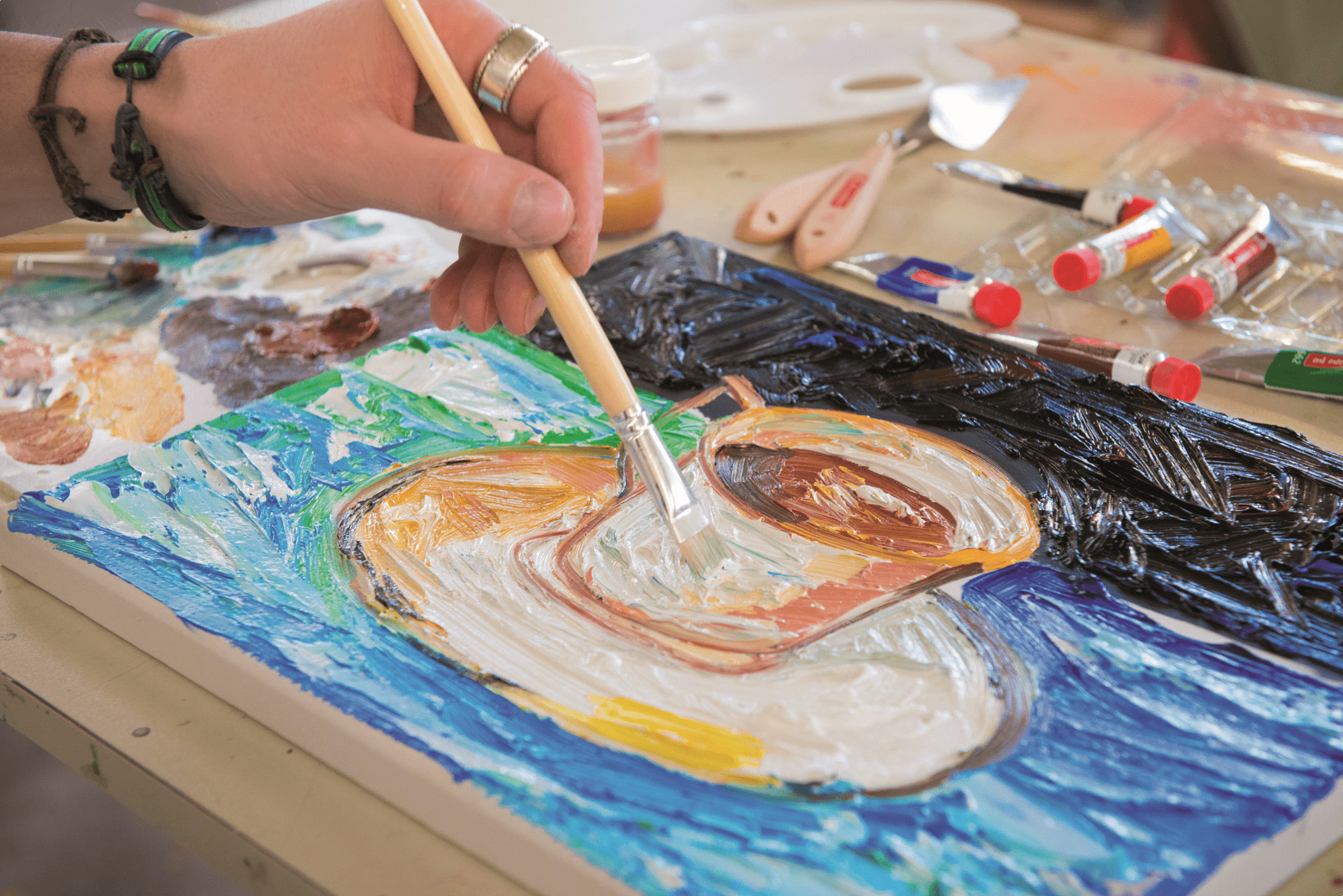 Освоить навыки рисования несложно. Понадобится пластик, дерево, бумага, картон или холст. Разрешается использовать натуральные и синтетические кисти. С помощью мастихина наносят яркие мазки